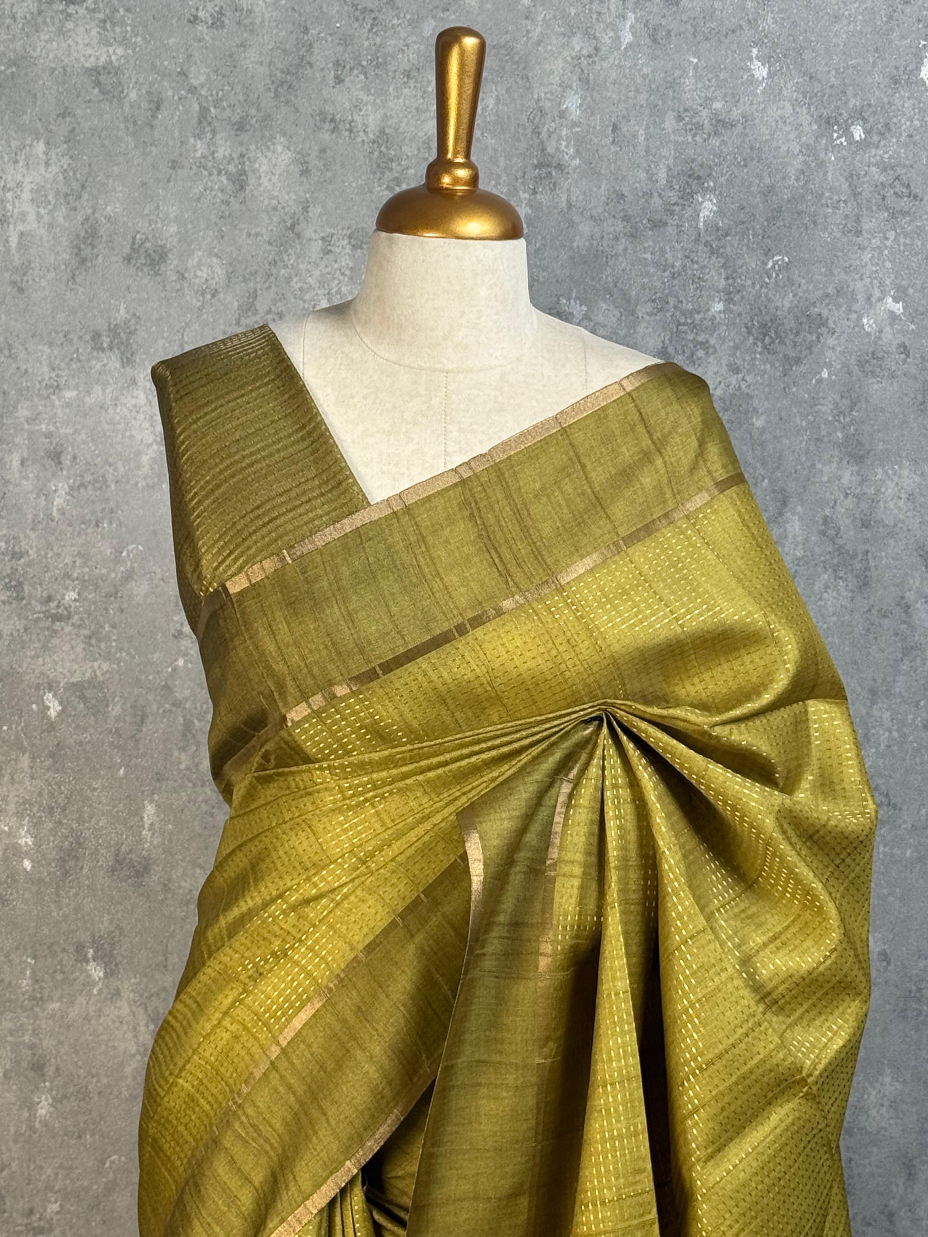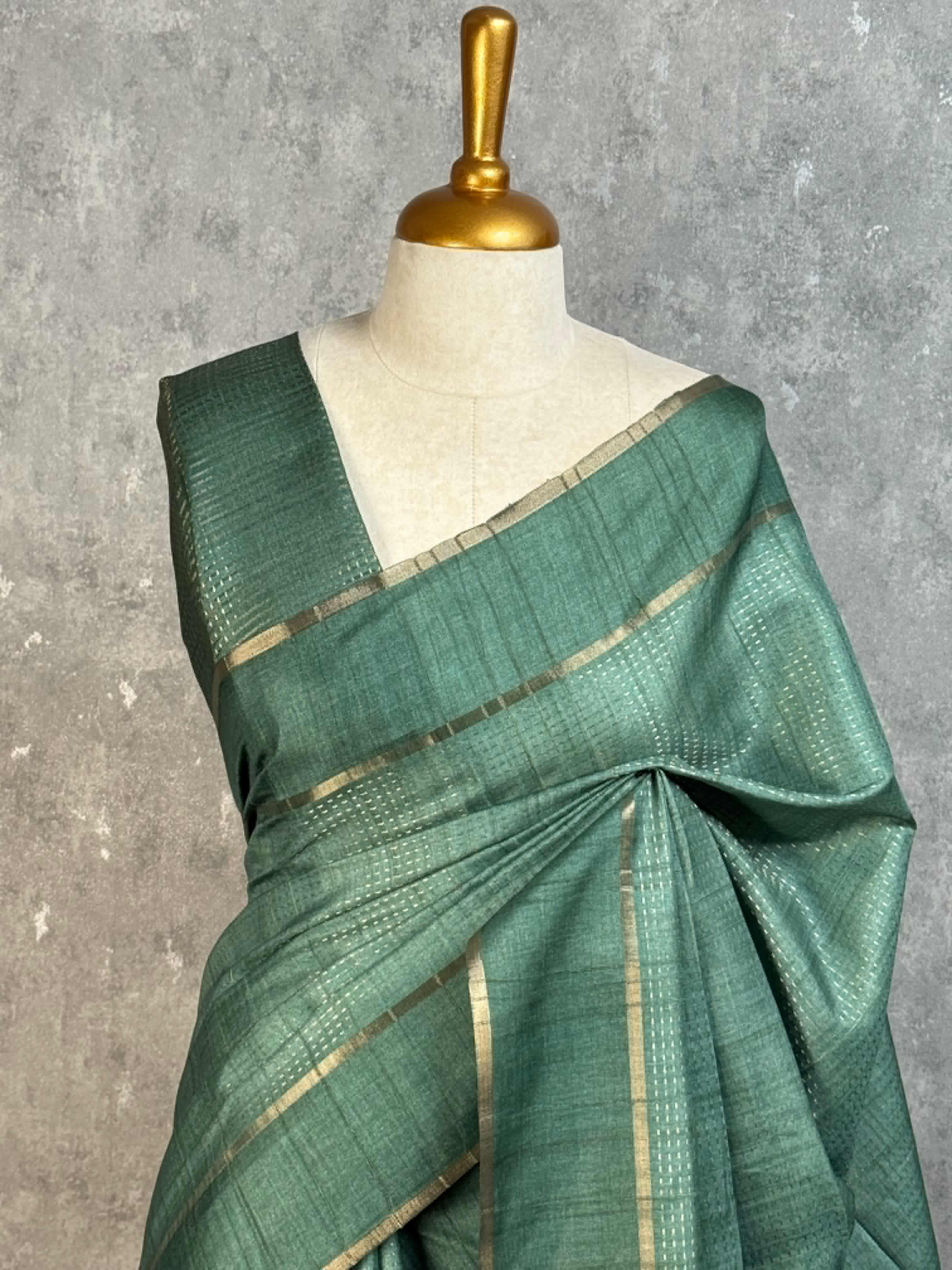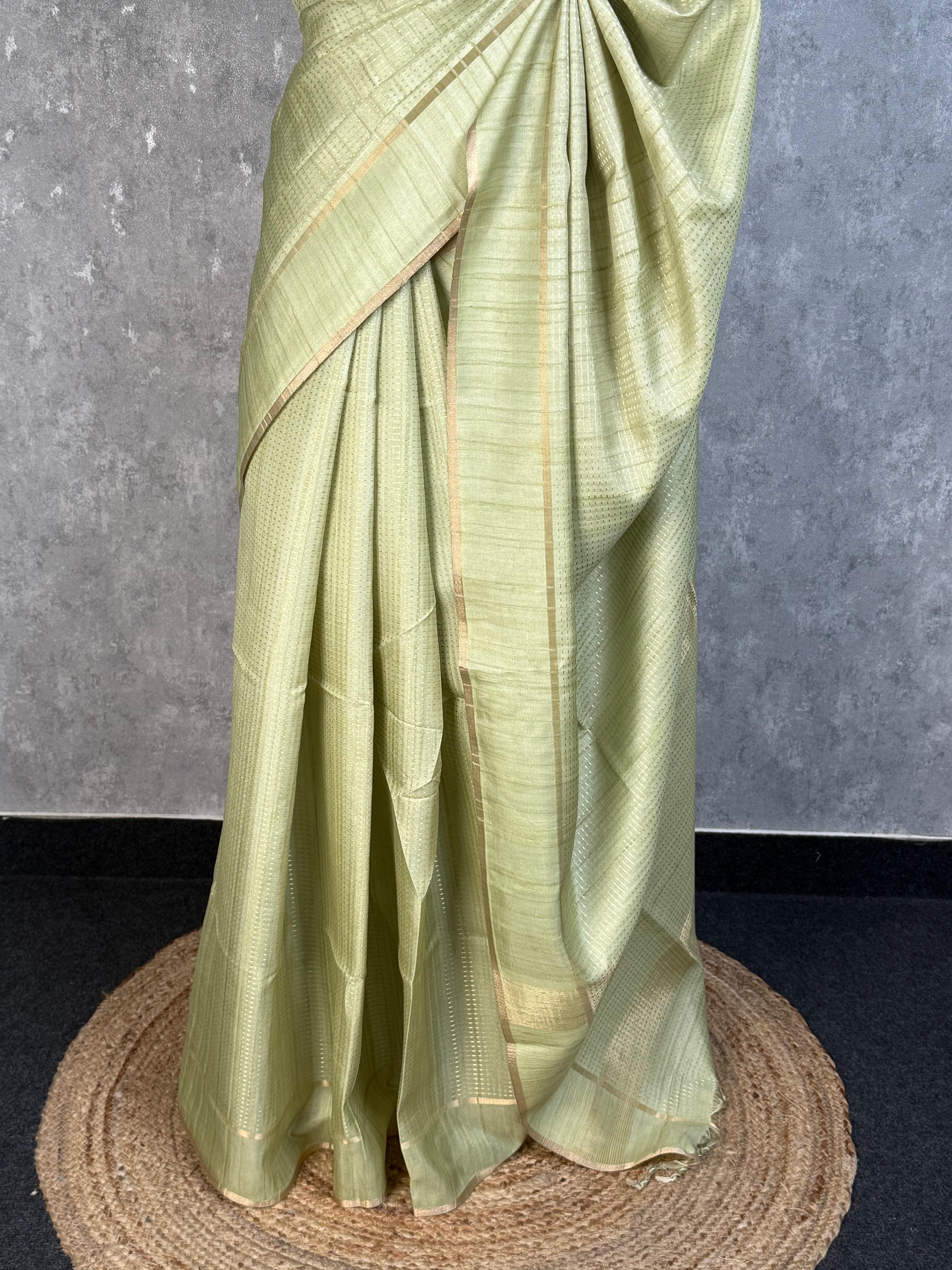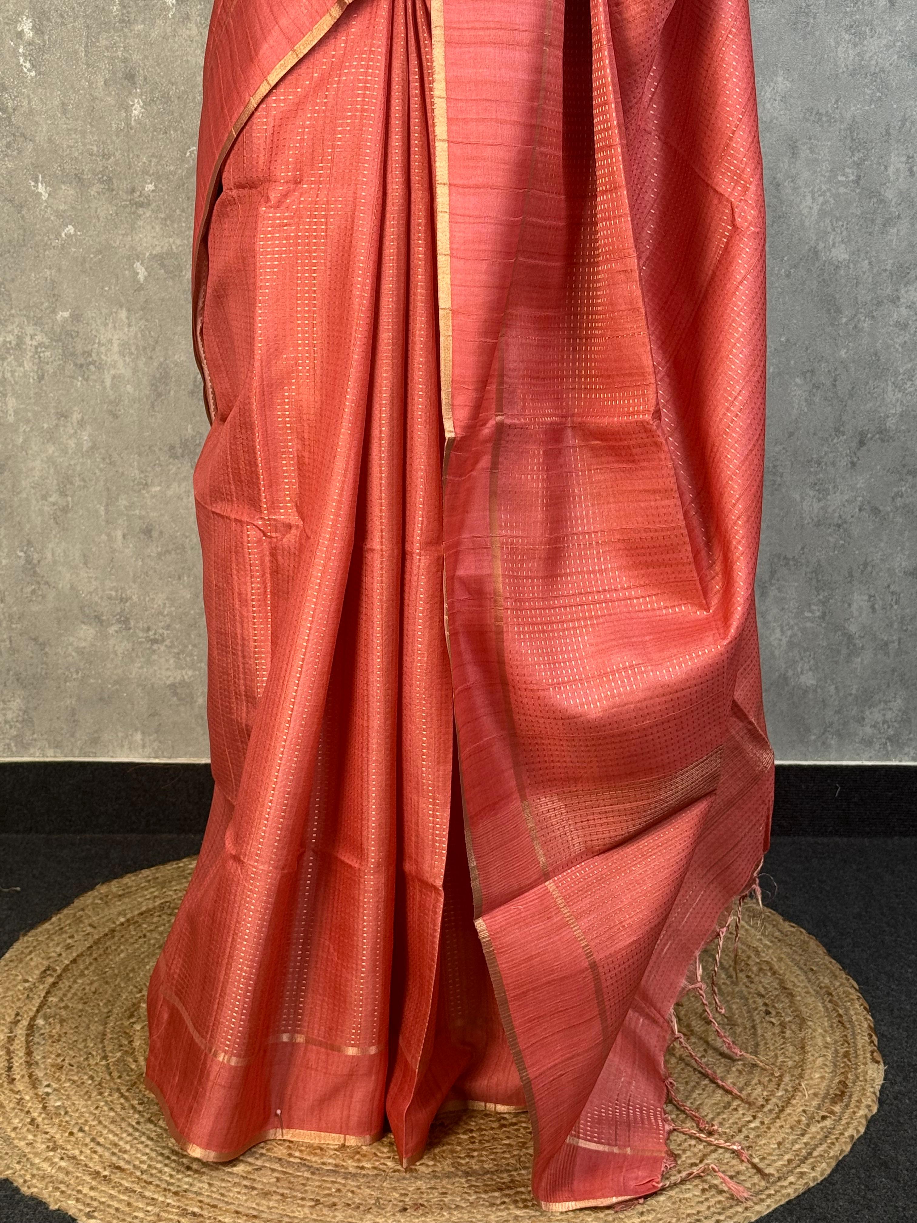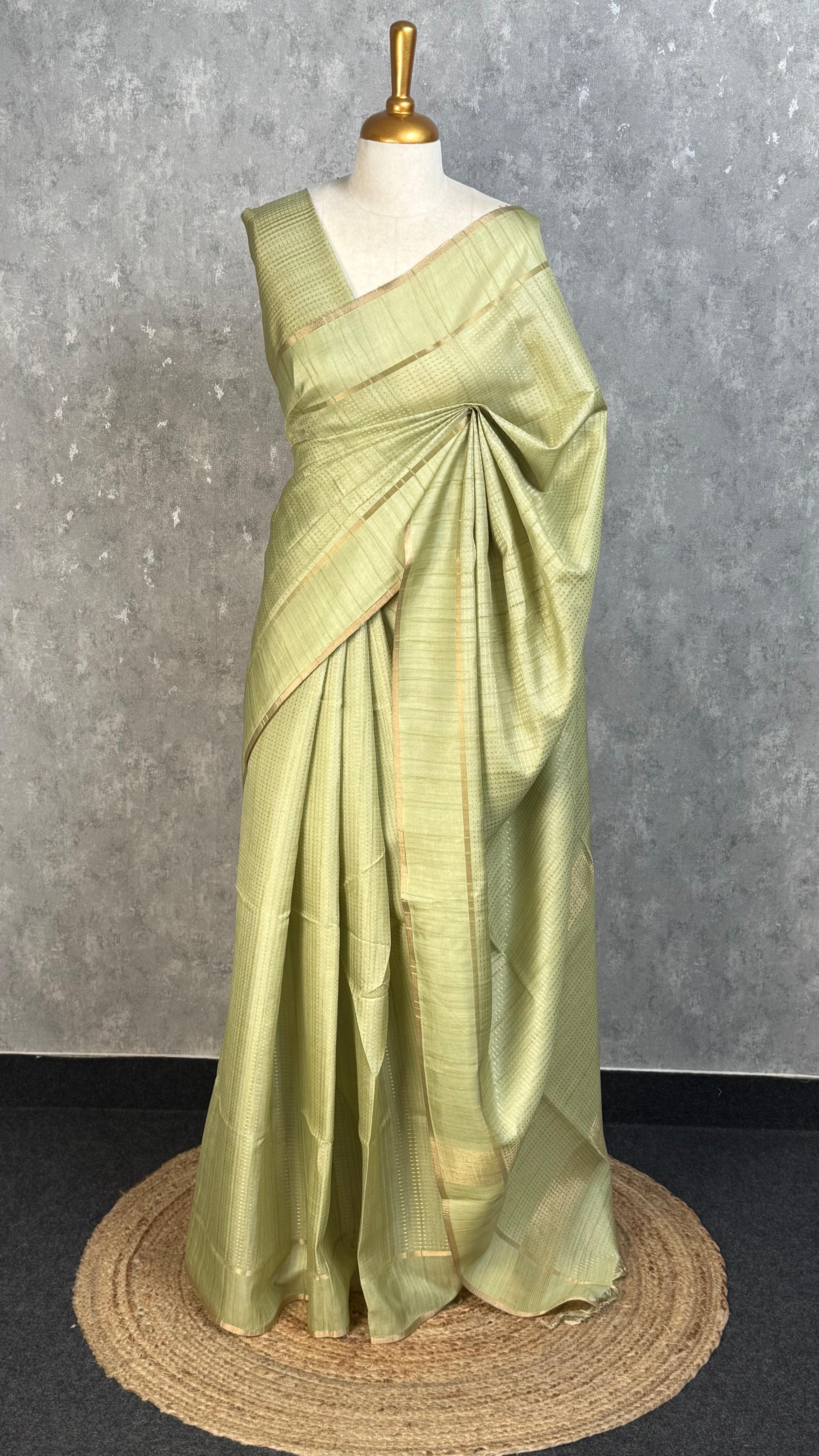 Drape yourself in timeless elegance with this Semi Tussar Banarasi saree, where traditional craftsmanship meets contemporary style. Woven with the finest semi tussar silk and adorned with intricate Banarasi patterns, this saree is perfect for weddings, festivals, and special celebrations. Experience the luxurious feel and graceful drape that makes every moment memorable.