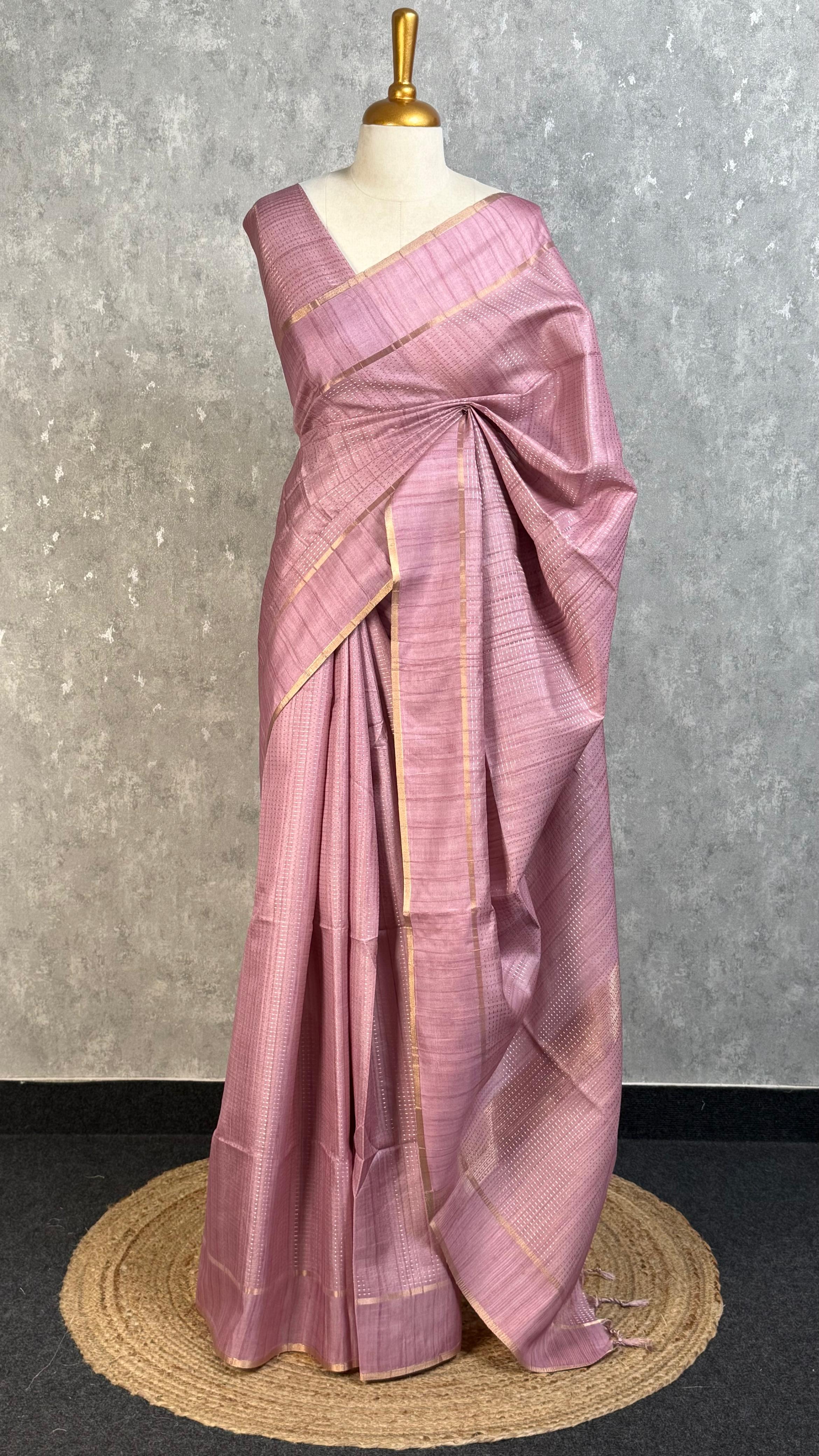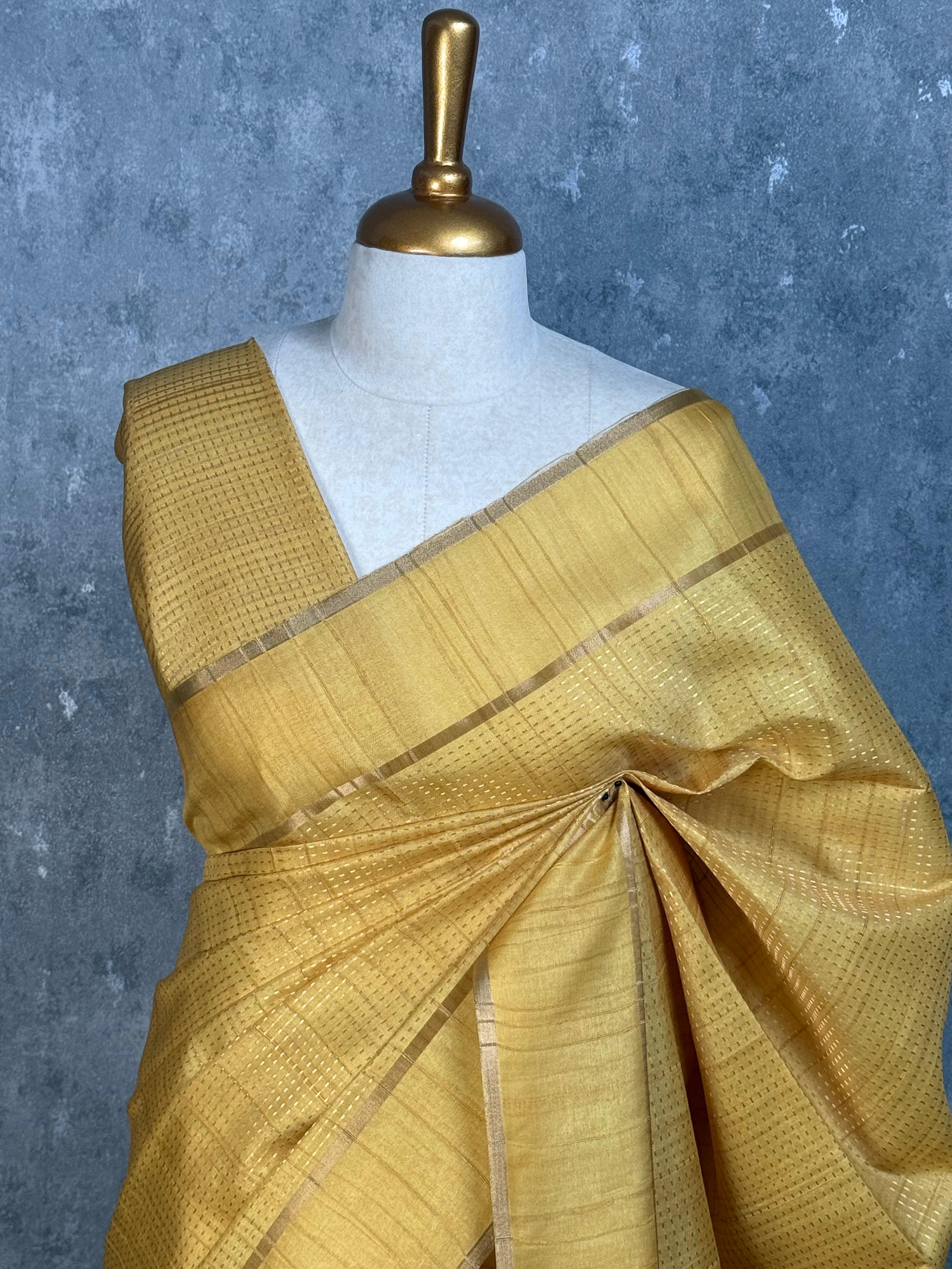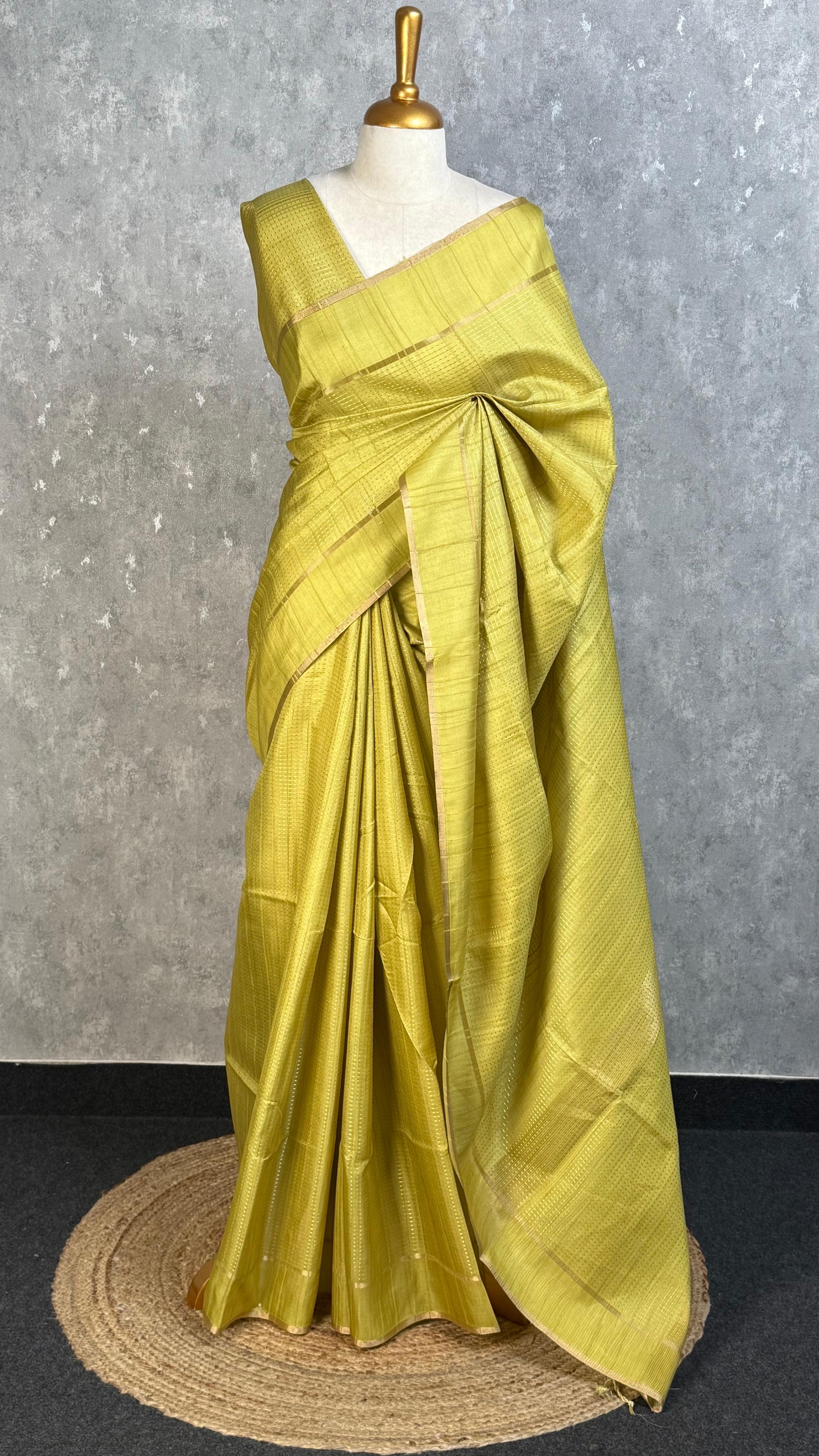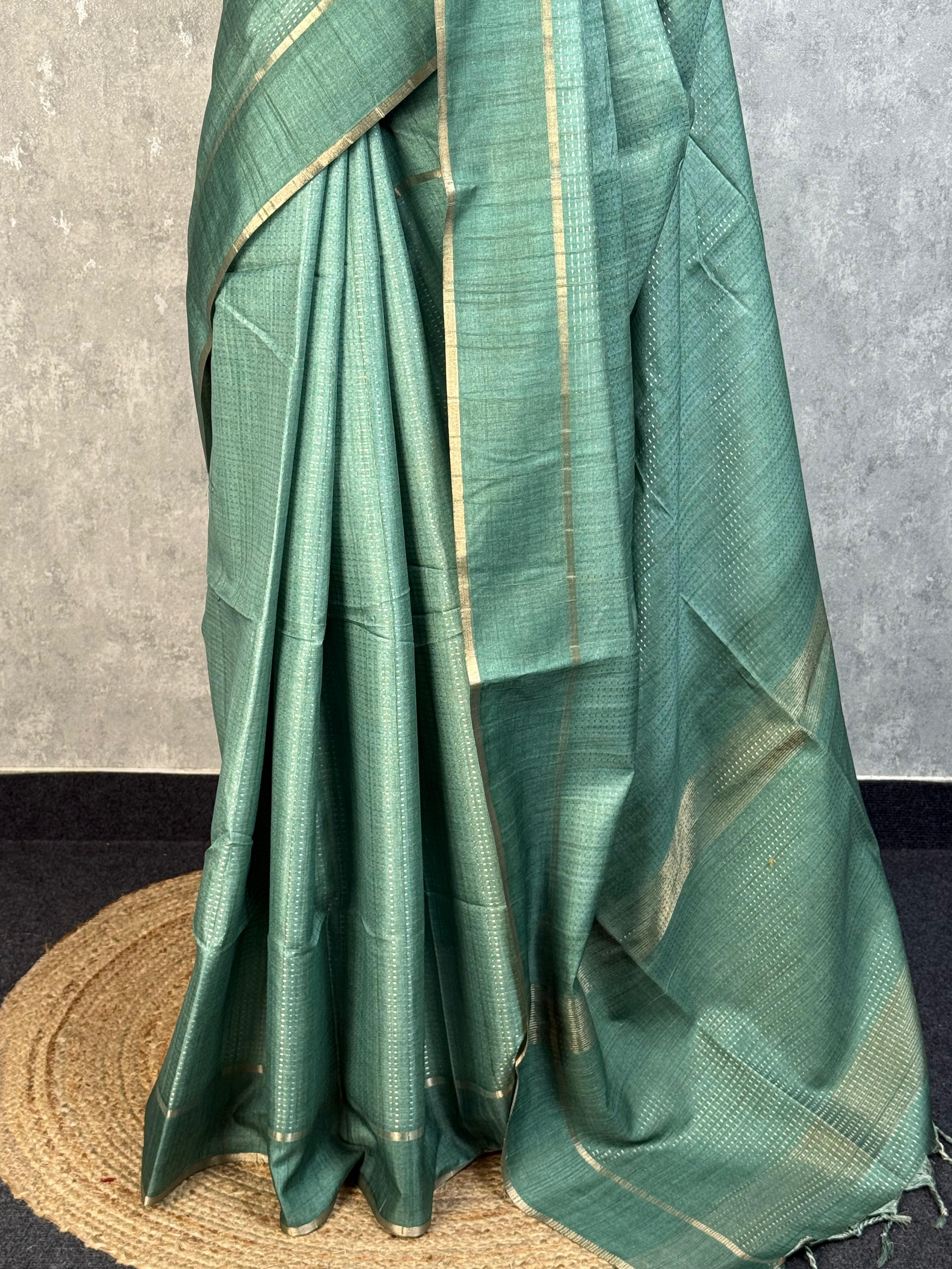 Drape yourself in timeless elegance with this Semi Tussar Banarasi saree, where traditional craftsmanship meets contemporary style. Woven with the finest semi tussar silk and adorned with intricate Banarasi patterns, this saree is perfect for weddings, festivals, and special celebrations. Experience the luxurious feel and graceful drape that makes every moment memorable.