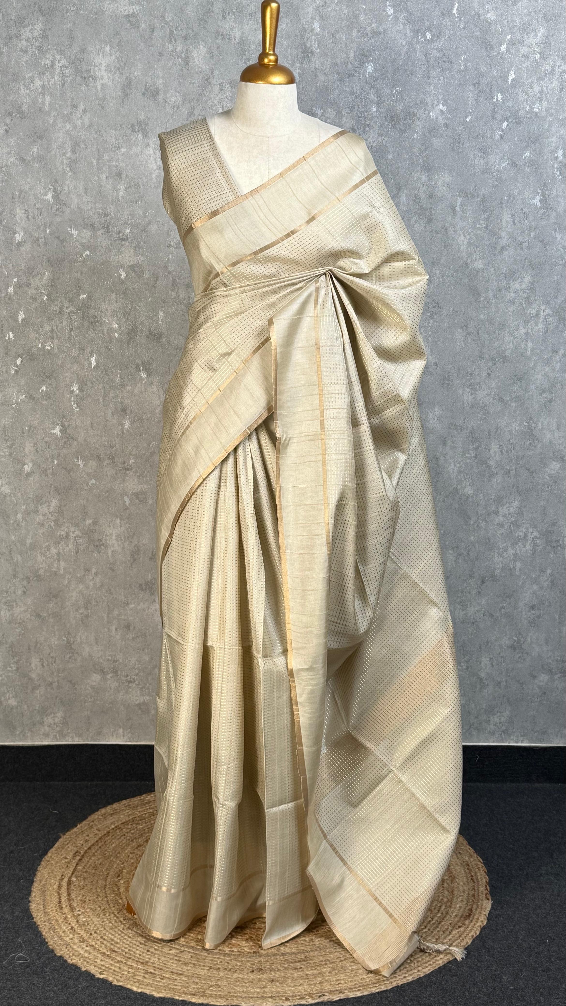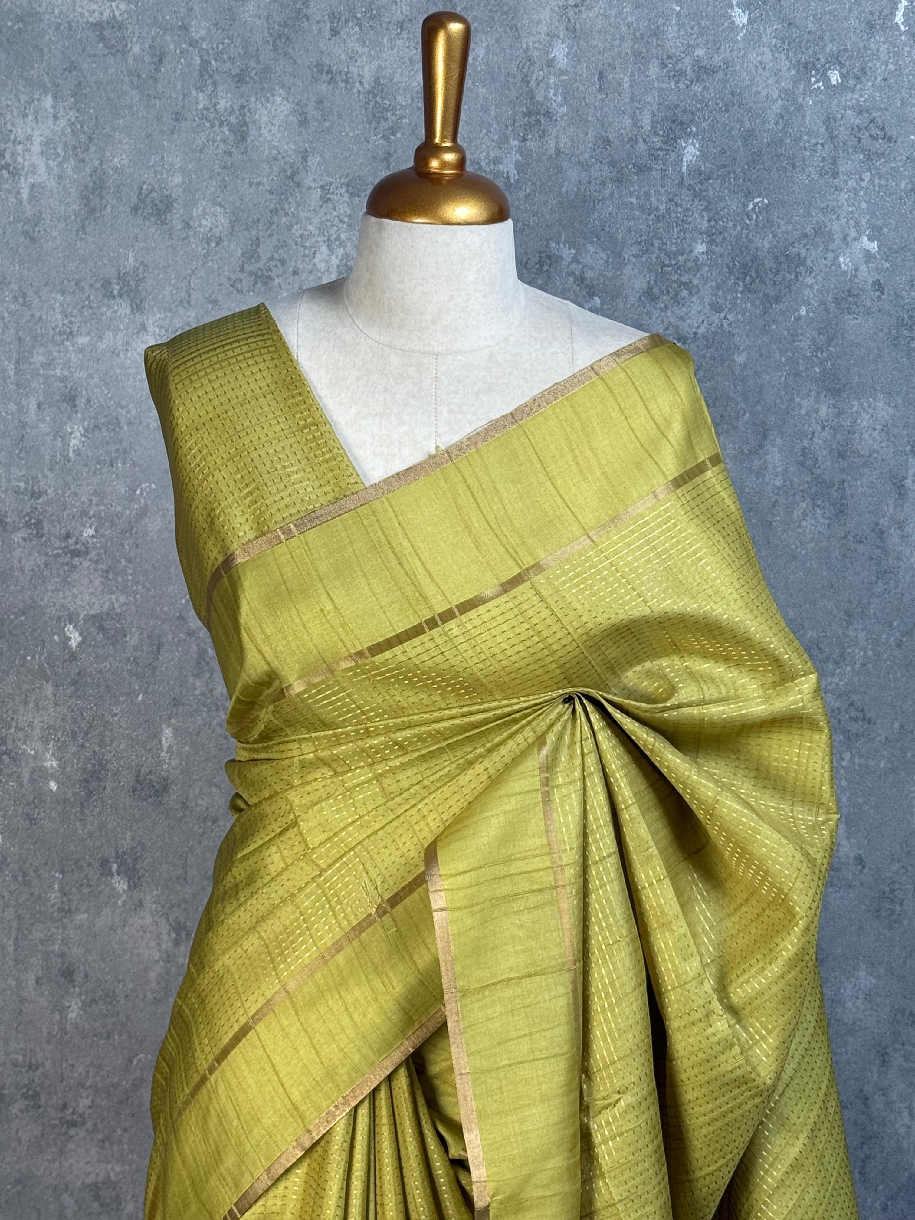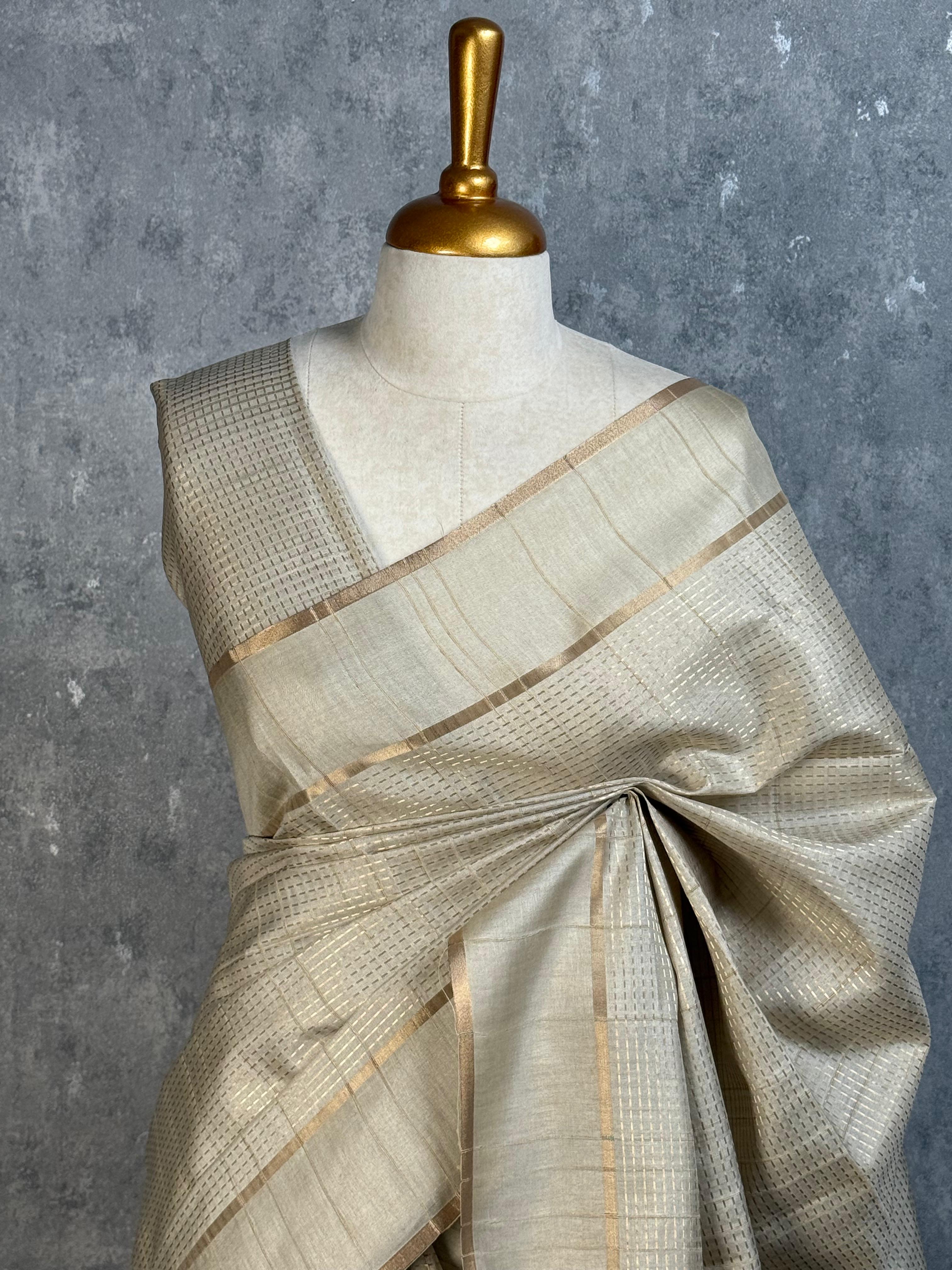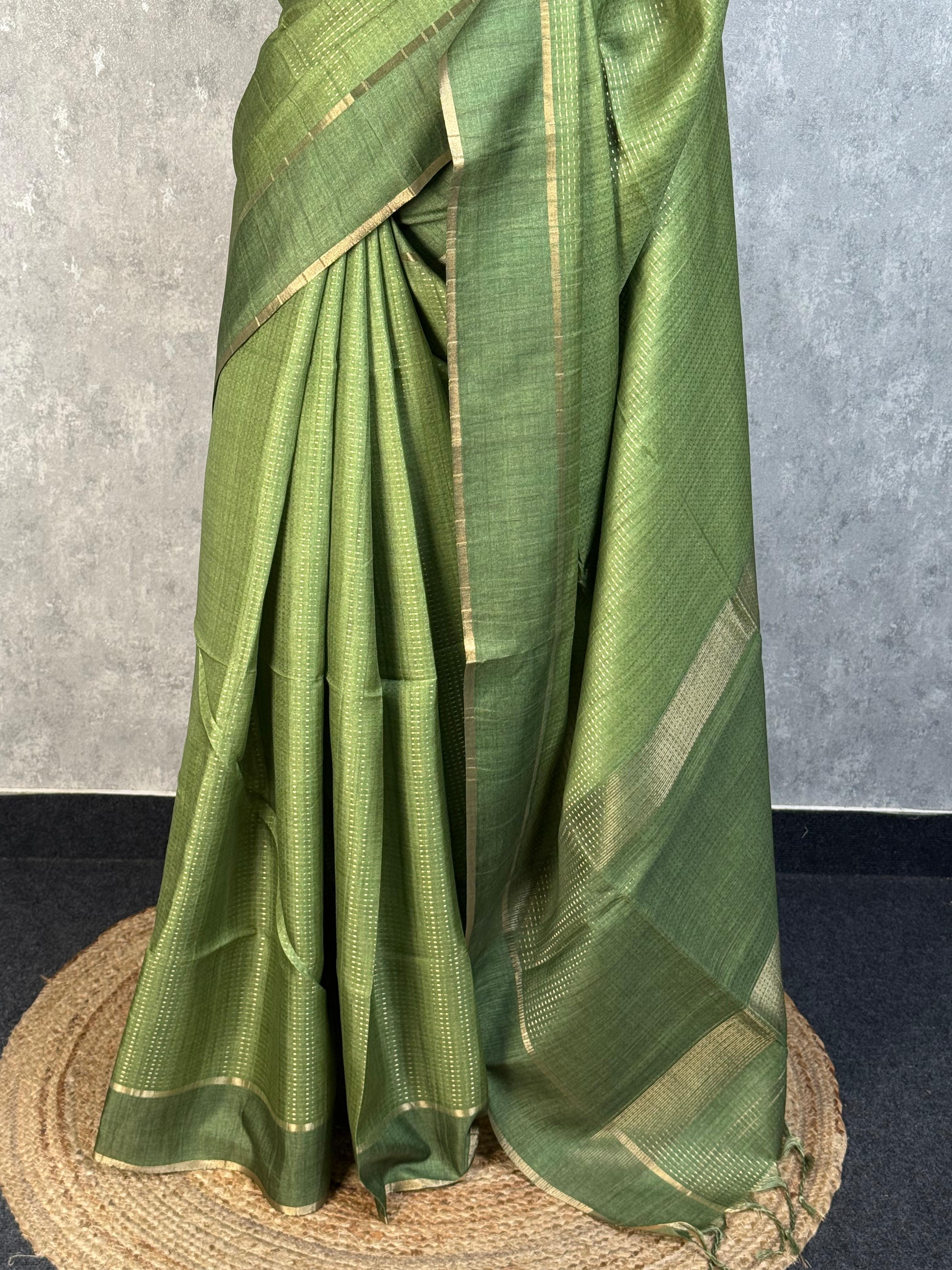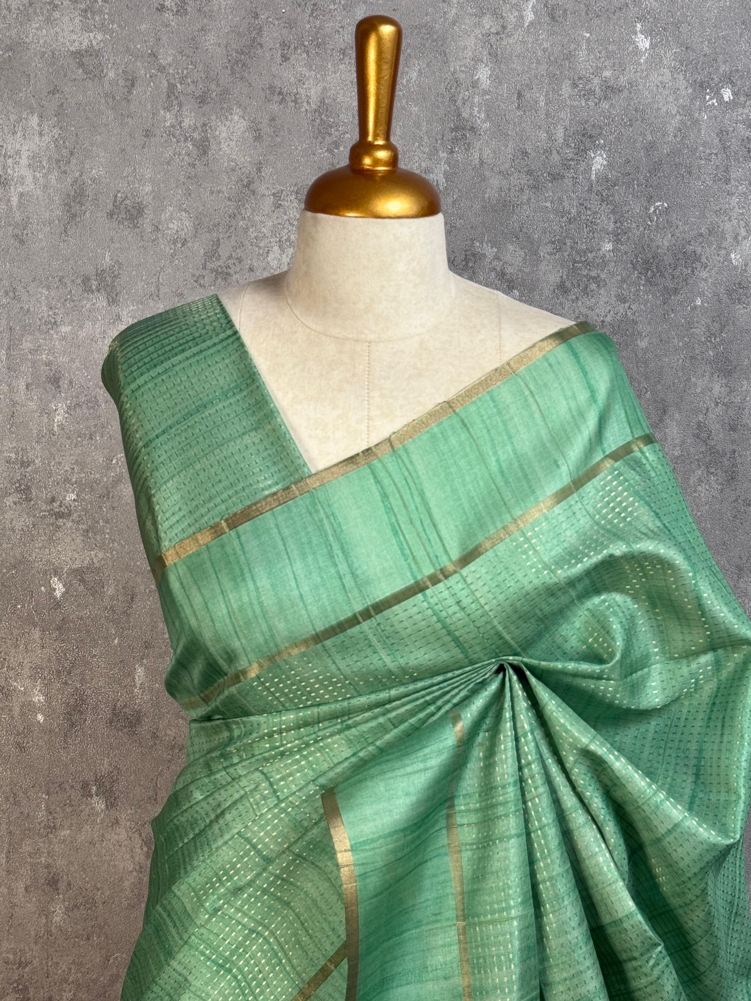Drape yourself in timeless elegance with this Semi Tussar Banarasi saree, where traditional craftsmanship meets contemporary style. Woven with the finest semi tussar silk and adorned with intricate Banarasi patterns, this saree is perfect for weddings, festivals, and special celebrations. Experience the luxurious feel and graceful drape that makes every moment memorable.