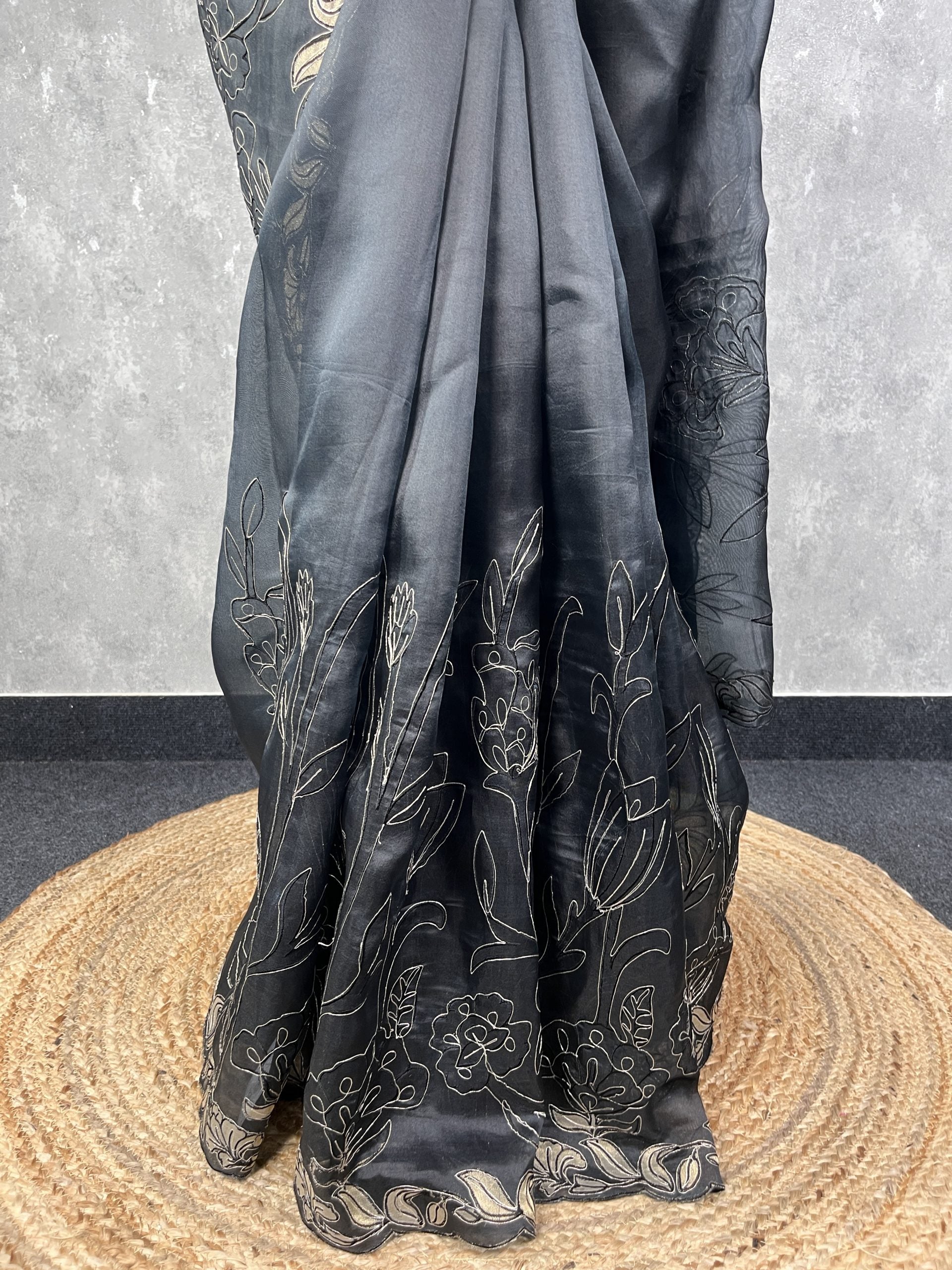 SILK ORGANZA APPLIQUE EMBROIDERY SAREE