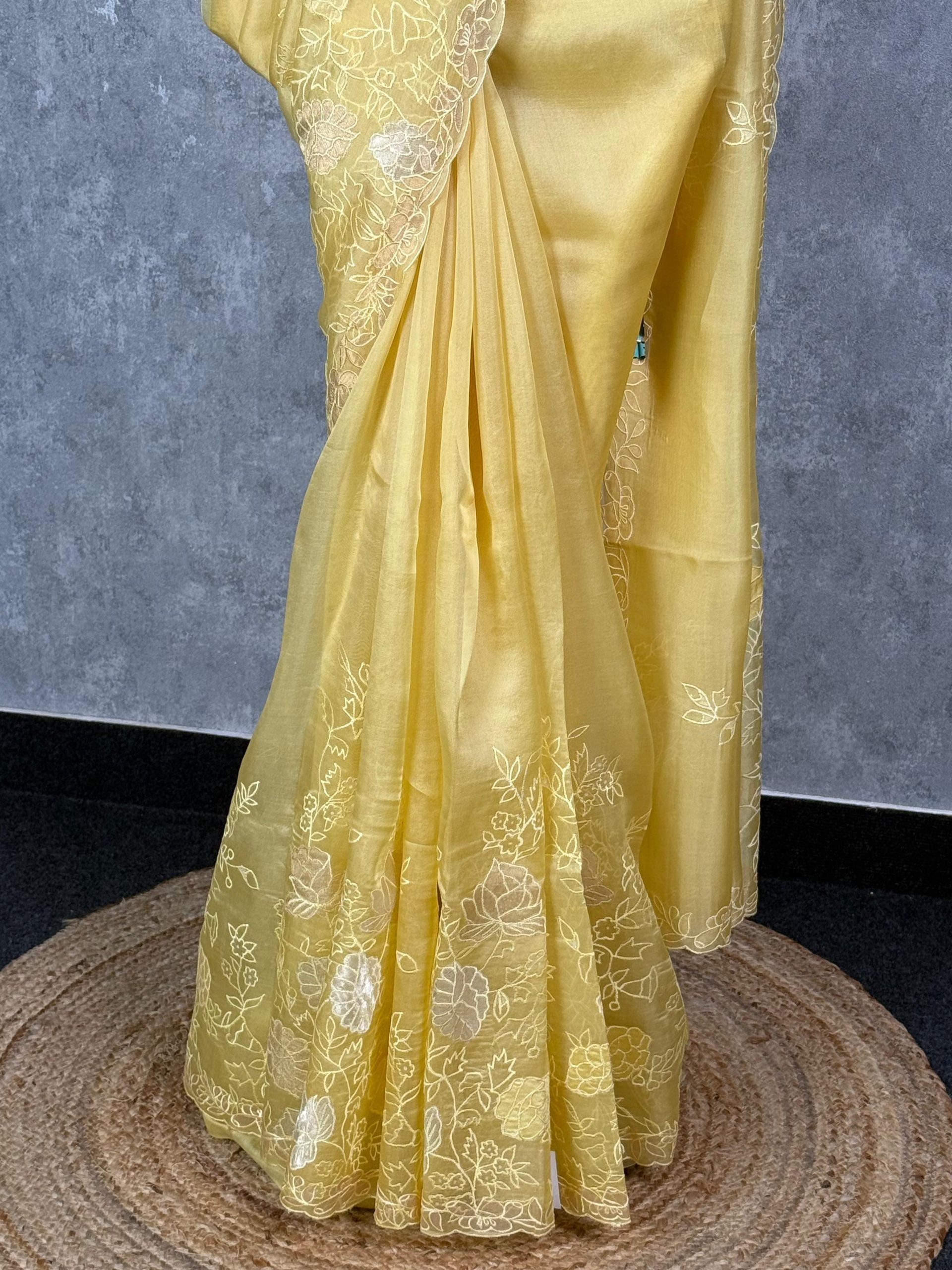 SILK ORGANZA APPLIQUE EMBROIDERY SAREE