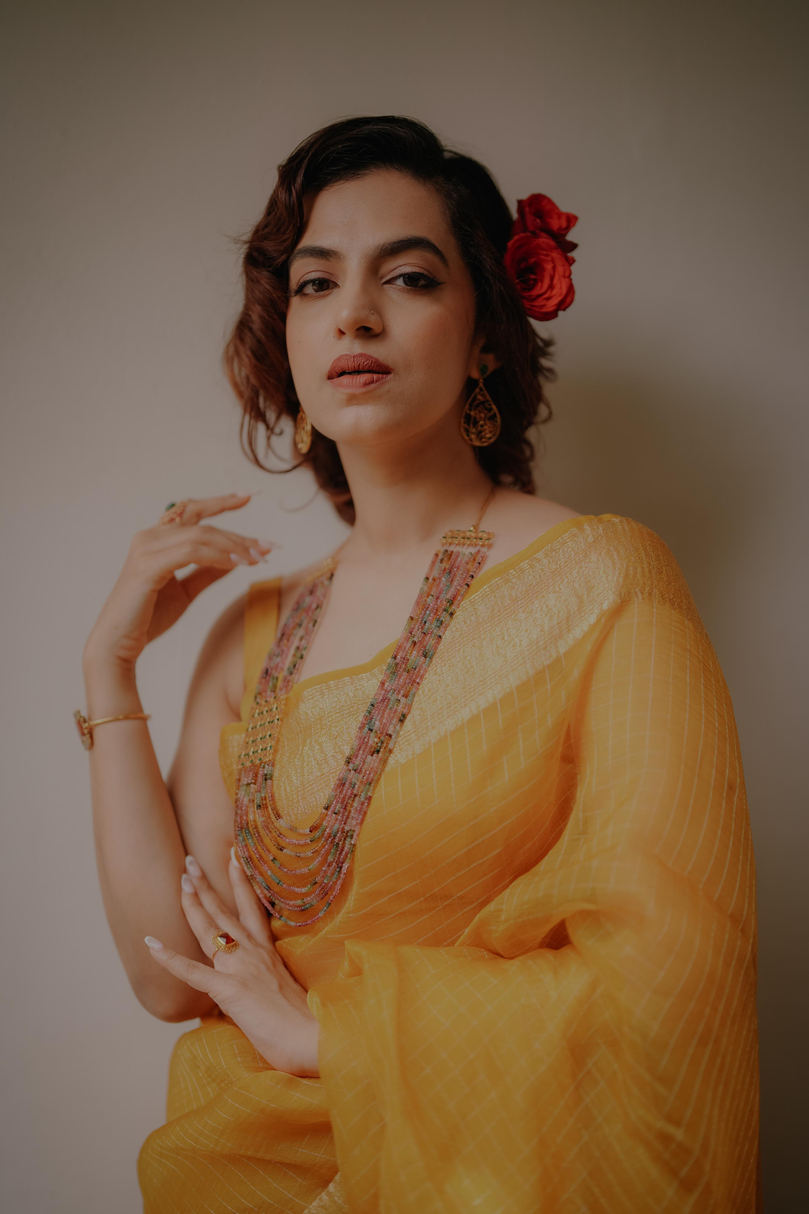 Elevate your ethnic wardrobe with this exquisite silk organza saree, where traditional craftsmanship meets contemporary elegance. The delicate appliqué work showcases meticulous artisan detailing, creating a sophisticated silhouette perfect for weddings, celebrations, and formal occasions. Crafted from premium silk organza, this piece combines luxurious drape with refined aesthetic appeal, making it an investment in timeless style.