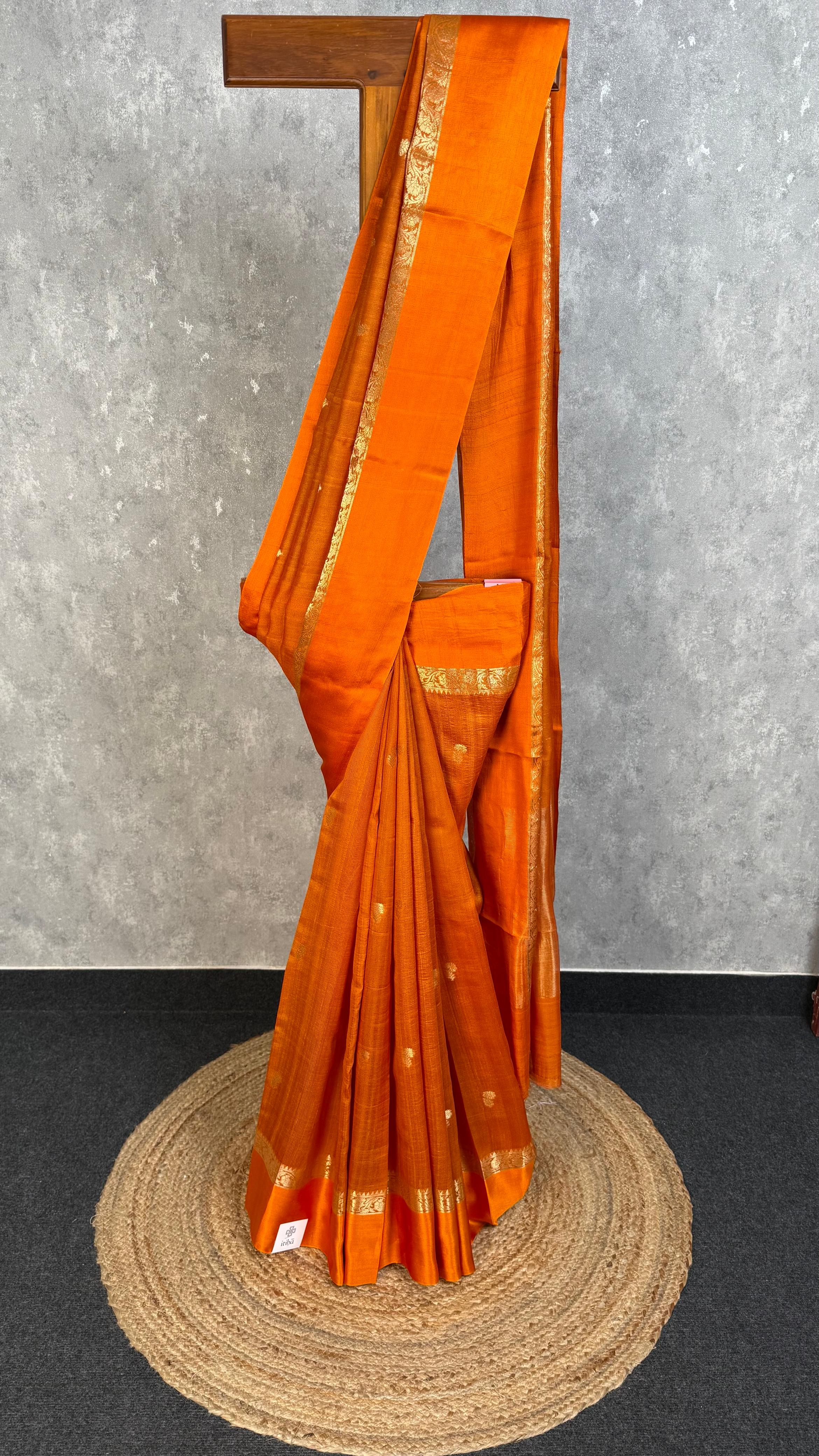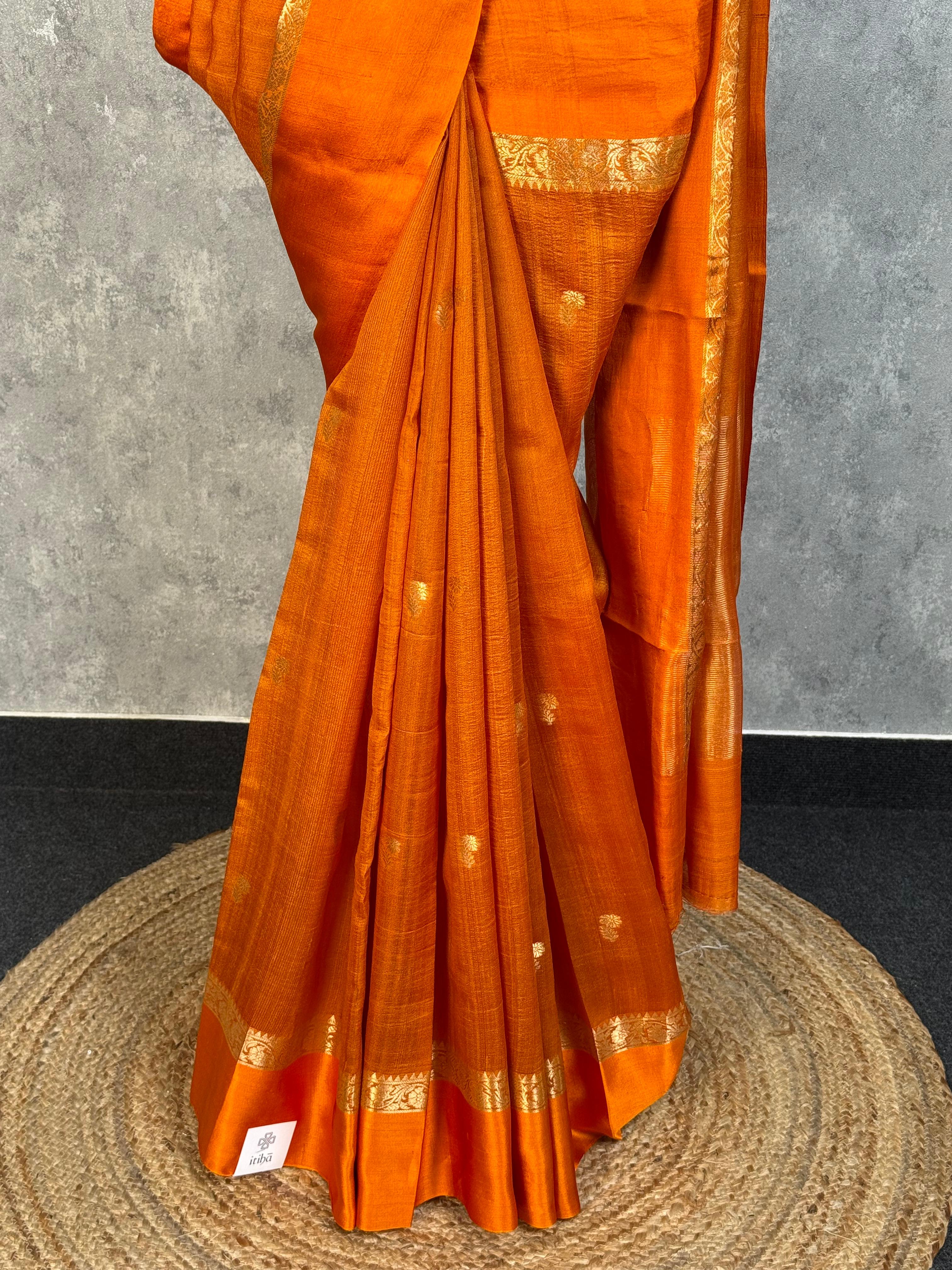Keep the garment wrapped in cotton fabric. It is advisable to fold your organza saris in a roll for better preservation. Avoid spraying perfume directly onto the garment. Do not use naphthalene balls while storing it. Remove any stains or spots only with white petrol. Store the garment in a moderate climate, as zari can react to weather changes.