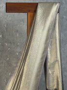 This elegant saree features a refined taupe-gold shade with a soft metallic sheen, giving it a luxurious and understated charm. The intricate woven detailing adds depth and richness without overpowering the design. Perfect for weddings, receptions, and sophisticated celebrations, it exudes timeless grace and subtle opulence.
