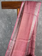 Tussar silk Banarasi saree with elegant zari stripes and subtile floral designs.The dusty pink tone adds grace, while the golden zari borders bring a traditional touch.