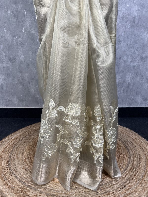 TISSUE KOTA APPLIQUE EMBROIDERY SAREE - Image 3