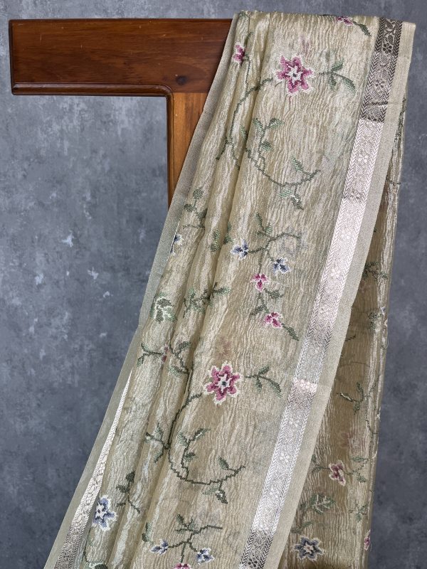 SEMI ORGANZA CROSS STITCH EMBROIDERY SAREE - Image 2