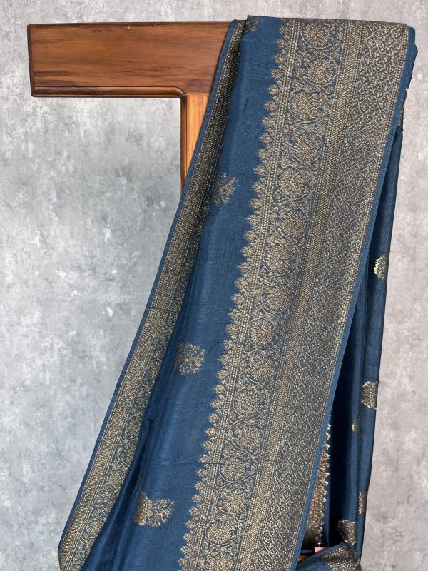 Semi tussar raw silk saree with antique zari weave. The saree comes with self color blouse piece.