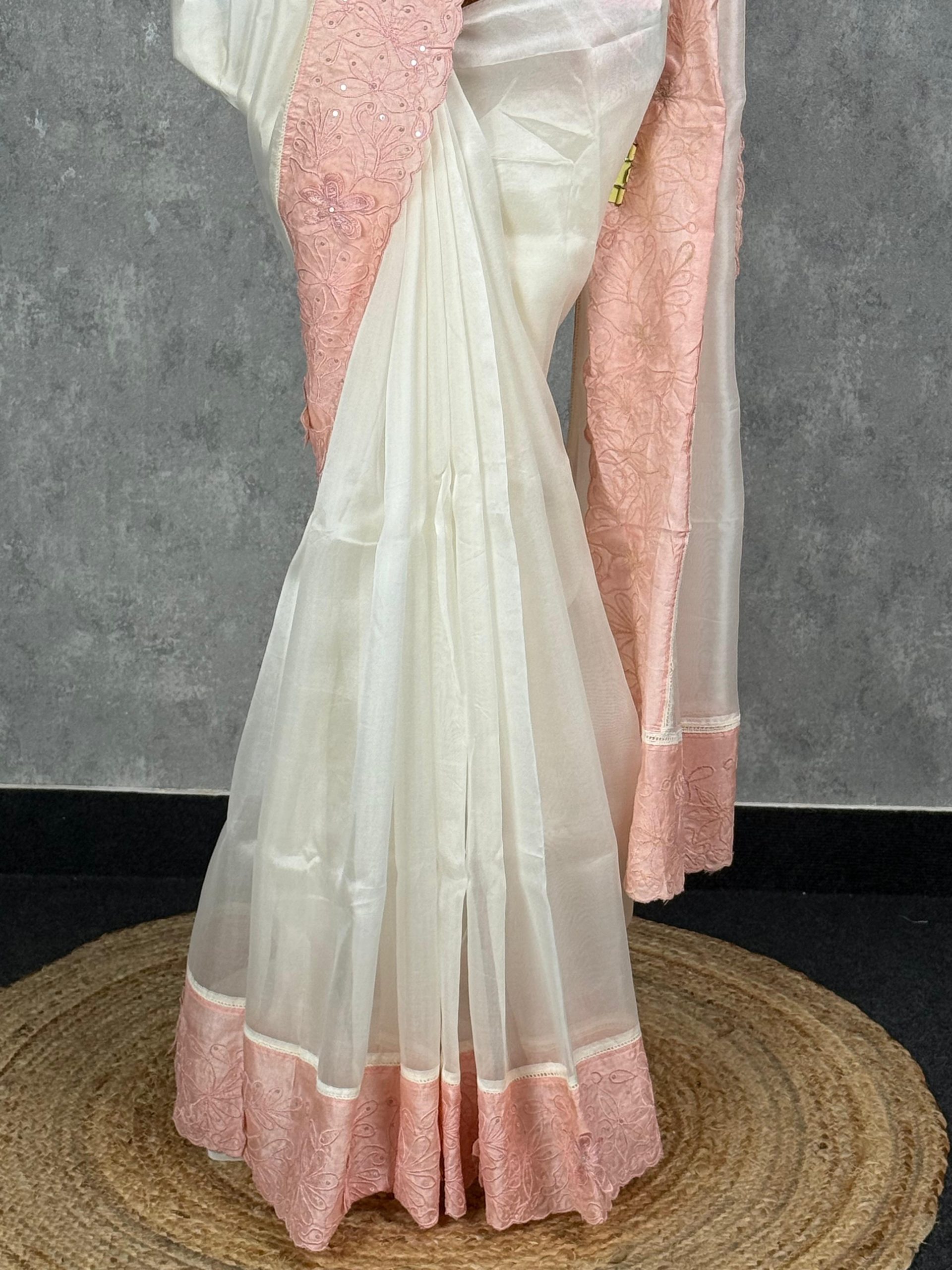 • SILK ORGANZA APPLIQUE EMBROIDERY SAREE