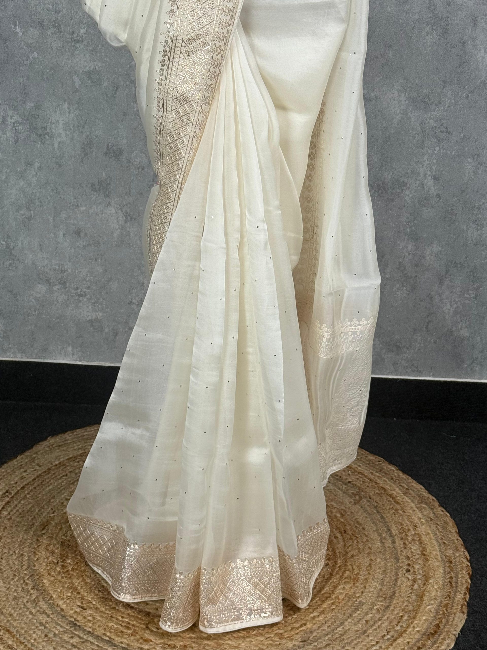 • SILK ORGANZA APPLIQUE EMBROIDERY SAREE