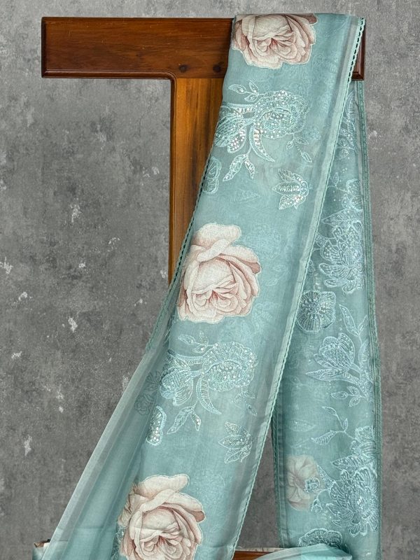 SILK ORGANZA EMBROIDERY SAREE - Image 3