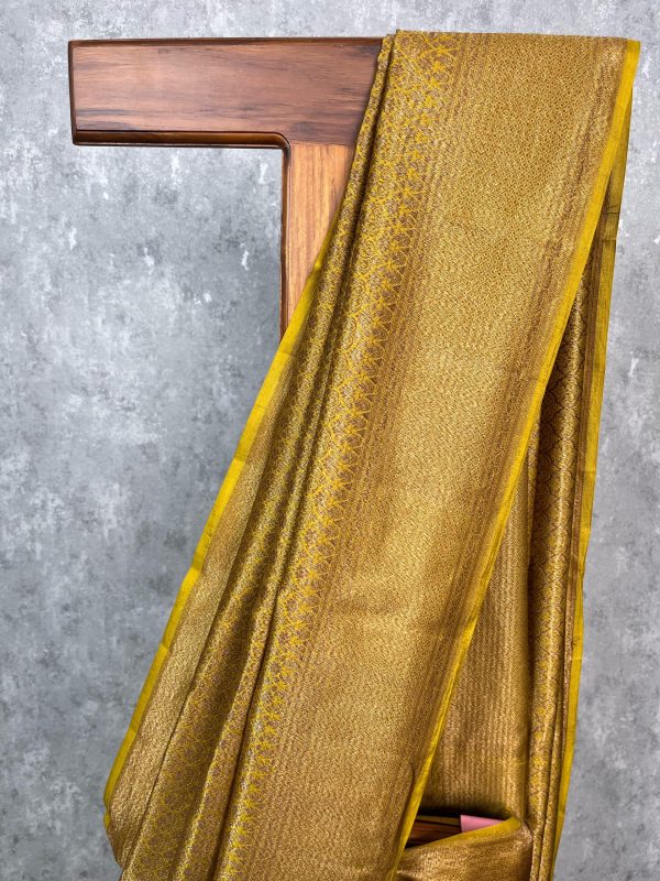 Pure katan silk saree handloom saree with antique zari brocade weave all over the body. The saree has richly woven pallu and blouse piece.