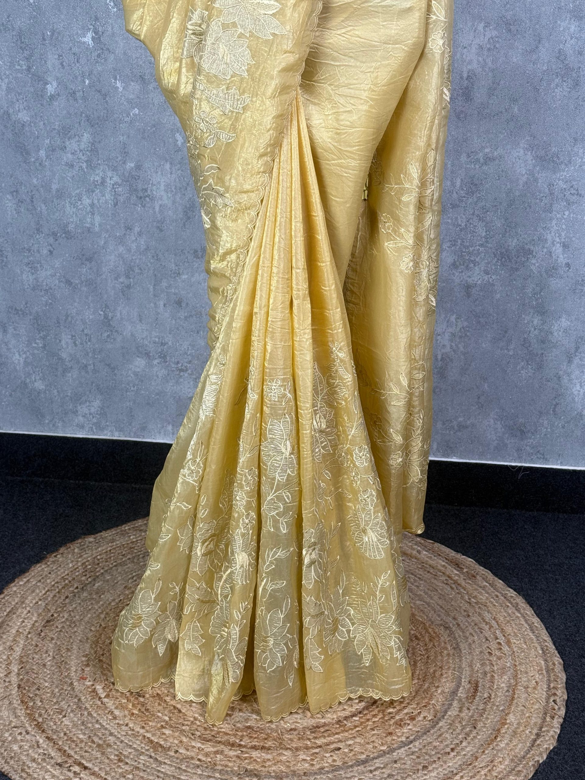 • SILK ORGANZA APPLIQUE EMBROIDERY SAREE
