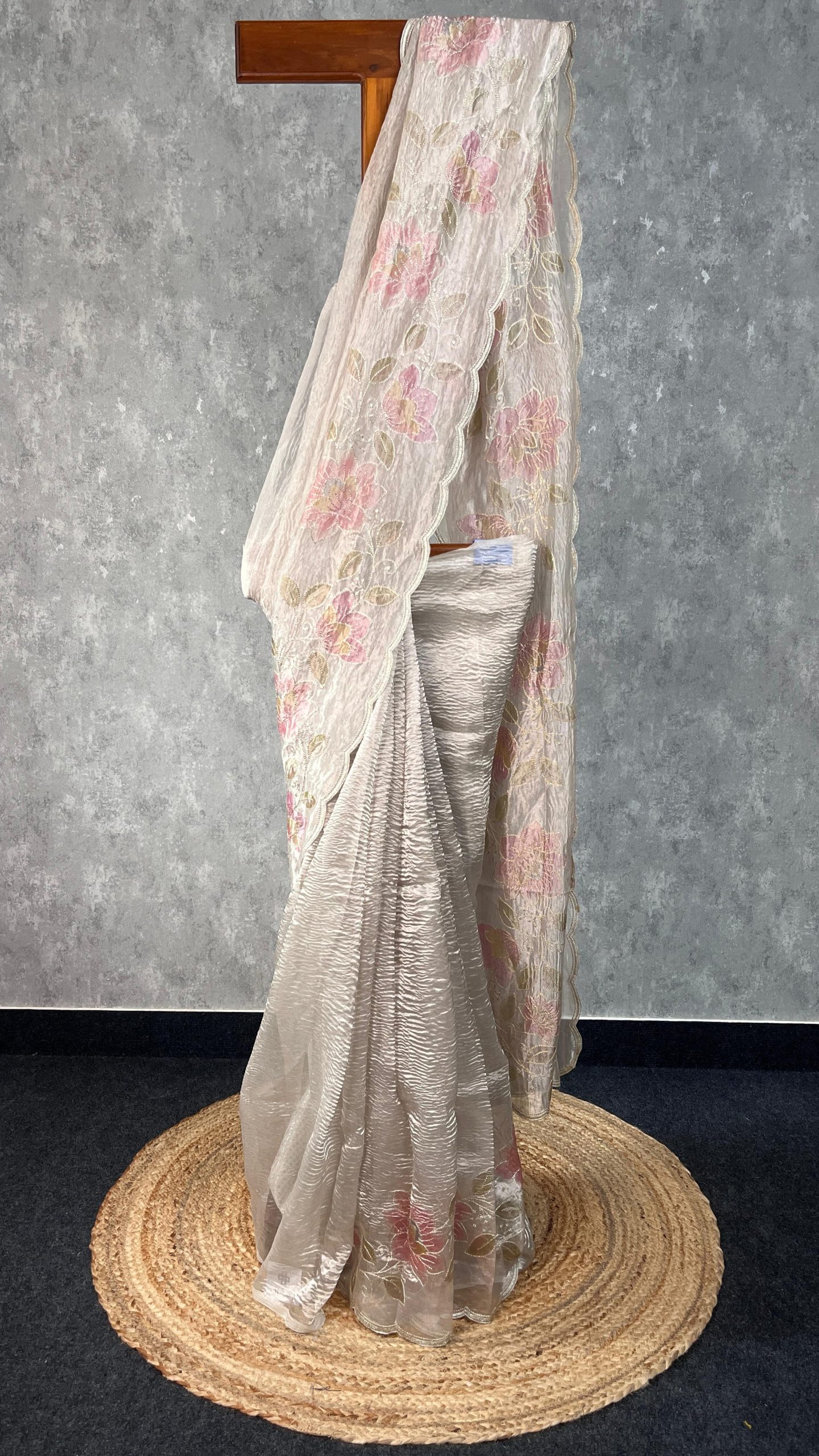 SEMI ORGANZA TISSUE APPLIQUE EMBROIDERY SAREE